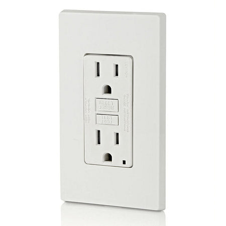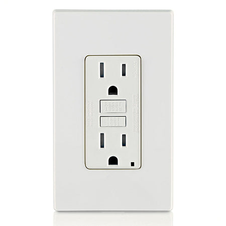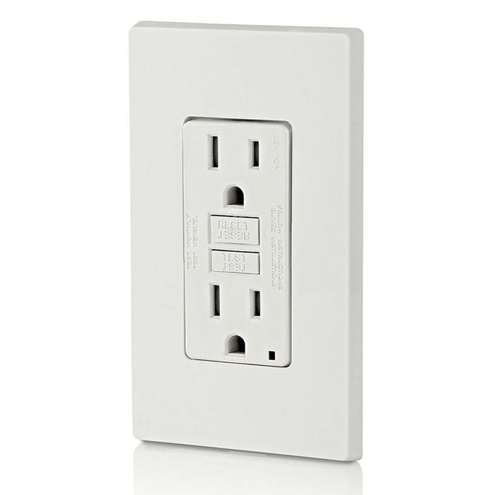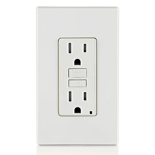 SmartlockPro® Self-Test Slim GFCI Outlet, 125 VAC, 15 A, 10 kA Short Circuit, 2 Poles, 3 Wires, 14 to 10 AWG Wire, Self-Grounding Grounding, NEMA Rating: NEMA 5-15R, 1250 VAC Dielectric Strength, LED Indicator, Flush Mounting, Screw Terminal, Polycarbonate Body, Brass Contact, White, -35 to 66 deg C, 1.32 in Length, 1.69 in Width, 4.21 in Height, Additional Information: Thermoplastic Face Material, Tamper-Resistant
