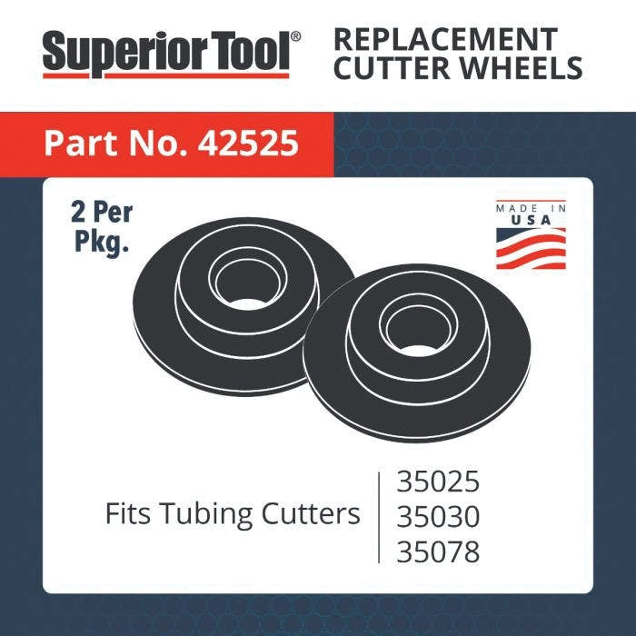 Superior Tool® 42525 Replacement Cutter Wheel, 1.19 in L, 3-1/2 in W, Black, Cut Materials: Aluminum, Cooper, Steel