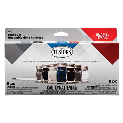 TESTORS® 9119X Paint Set, Enamel Paint, Flat, Assorted, 0.25 oz Iconic Glass Bottle
