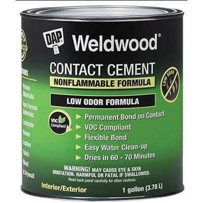 WELDWOOD® 7079825336 Non-Flammable Contact Cement, Liquid, Natural, Slight Solvent, Resin, Rubber Base, 1 gal
